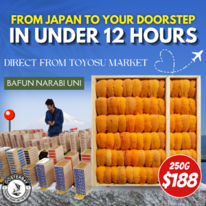 That is why, by the same afternoon, the uni can already be delivered to your doorstep in Singapore. From the Toyosu Market in Tokyo to your table at home, you enjoy uni that is as fresh as if you were eating it in Japan.